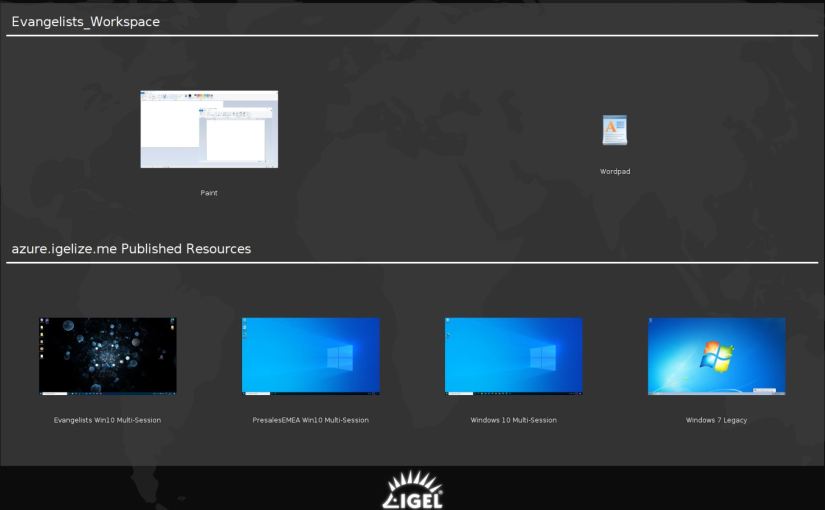 Secondly, but also very important is the User Experience, IGEL made a good update to the “Resource picker” (see image below) where you now will see LIVE thumbnails of your running sessions, and also allow you to by right-clicking a resource, launch it without connecting to the desktop or app. This will certainly be a good benefit in many use cases. In the below pic, you see my accessible resources, where the “Evangelists Workspace” is a 2020 Spring update published workspace and the bottom section is for the legacy published desktops. Now you can start mixing and adding WVD workspace publishing without disruption.