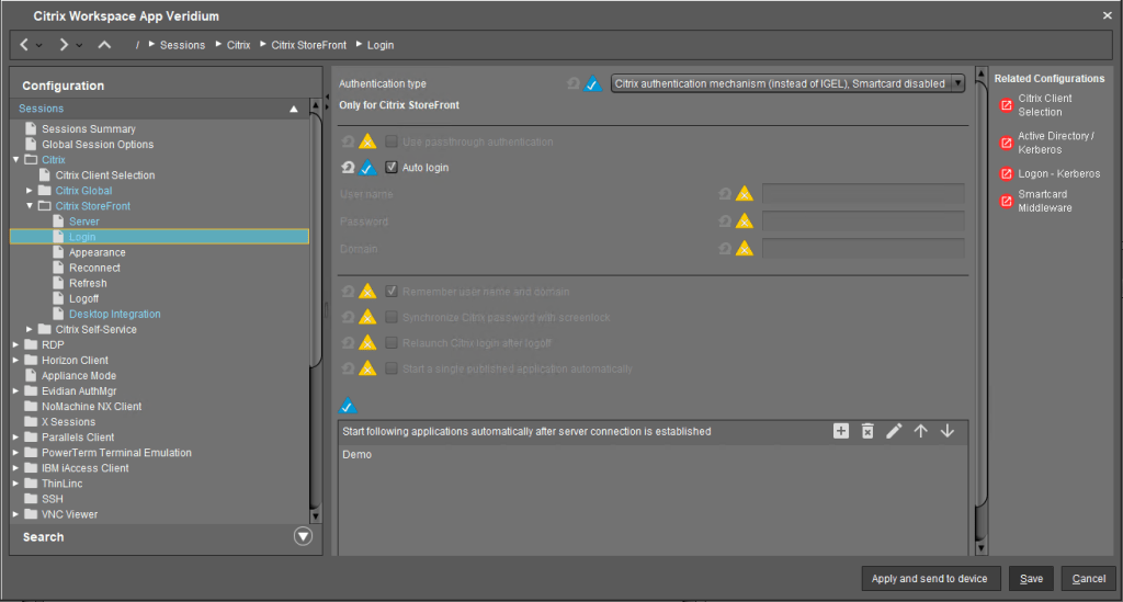 Lets have a look at the IGEL OS configuration of Citrix Workspace App to enable Veridium Authentication: