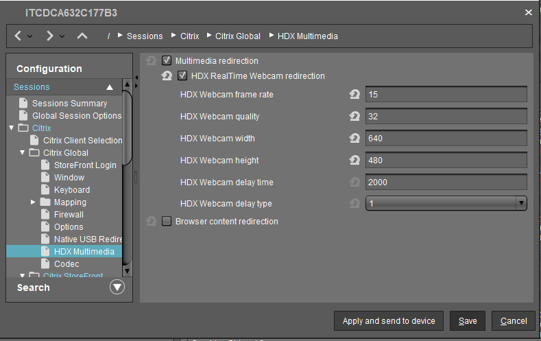 - We are using HDX Webcam Redirection of our Microsoft LifeCam’s configured like this: