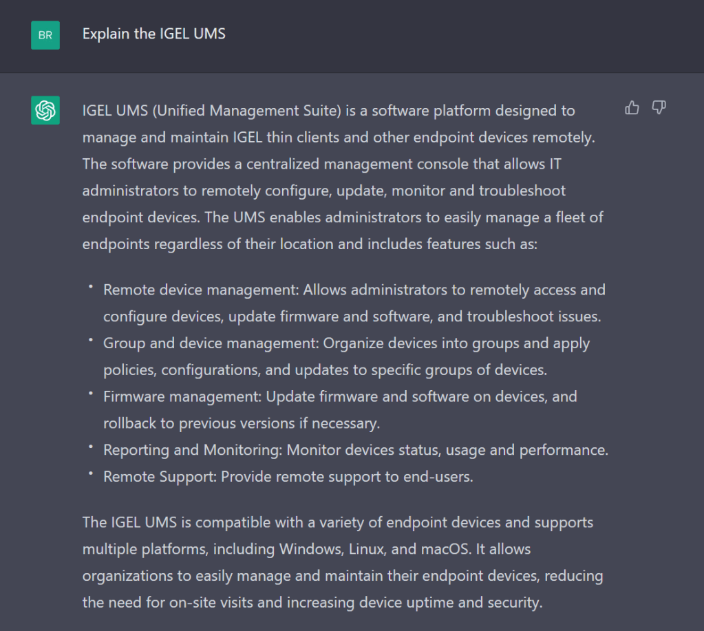 I also asked ChatGPT to “Explain the IGEL UMS”