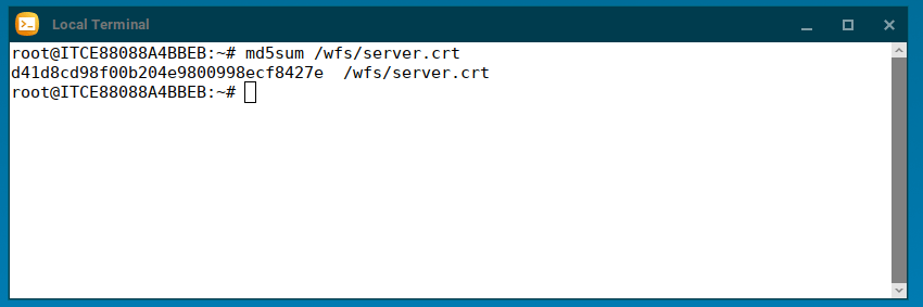 In the picture above you have an example of how to create a MD5 check on the file /wfs/server.crt